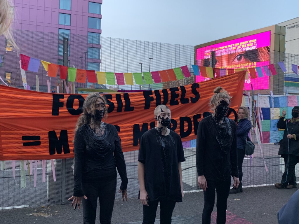 The UN-controlled blue zone was where the critical negotiations between world leaders took place. Only those accredited by the UNFCCC (United Nations Framework Convention on Climate Change) could access this space meaning many countries and organisations were not represented. A combination of COVID restrictions and travel constrictions meant that two-thirds of civil-society organisations who usually send delegates could not travel to Glasgow.